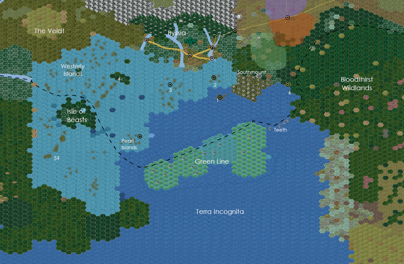 - Beyond the dotted line is Terra Incognita. None of the inhabitants of the Federated Nations know more than rumors about what lies there, at least until you get far enough east to reach the waters owned by the Serpent Dominion.