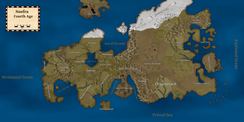 The north-eastern continent of Quartus, Noefra is the center of most campaigns to date. It was the site of the Cataclysm War, as well as the original continent from which Oelfra and Soefra were split.